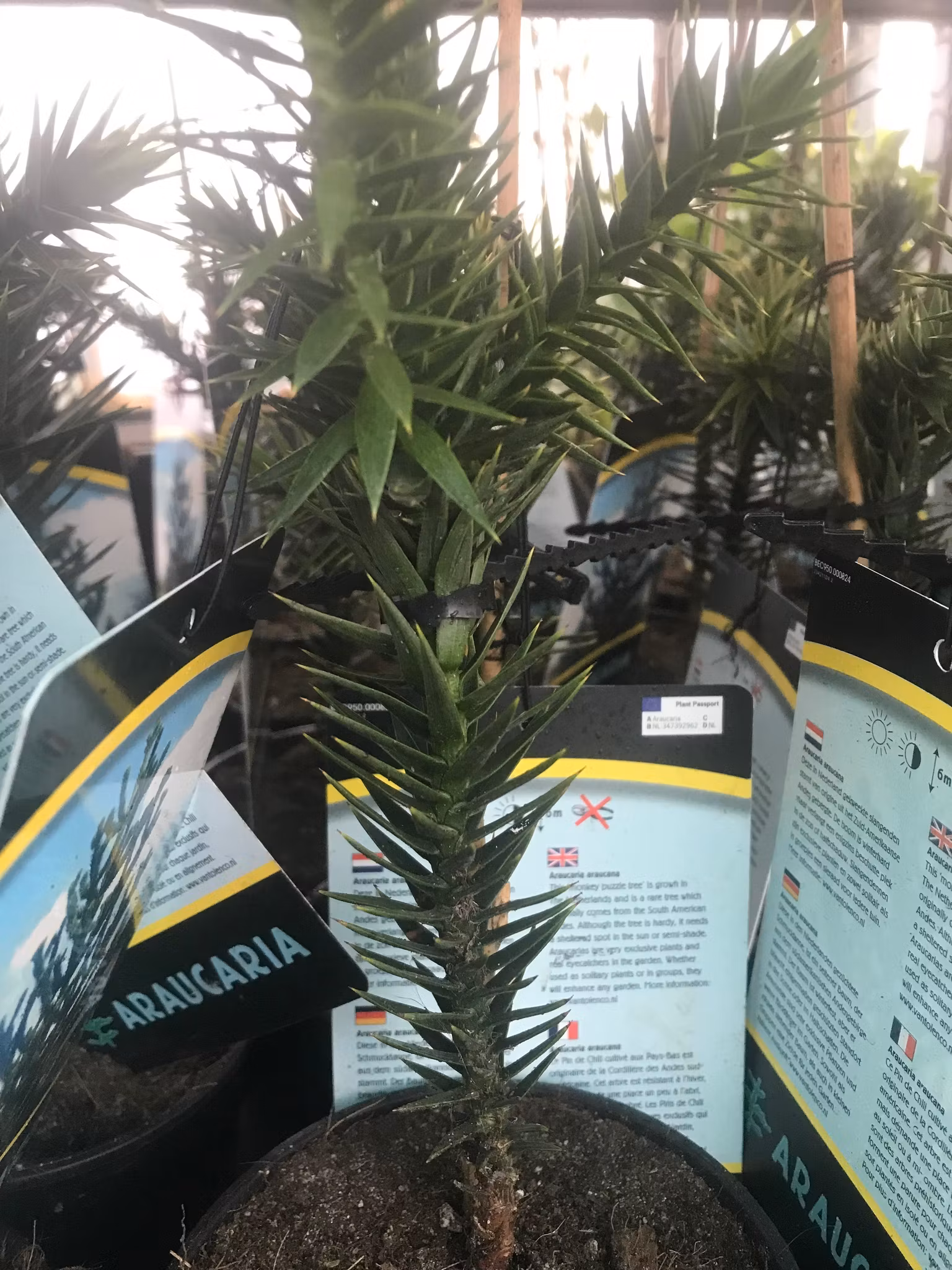 Ovanligt vintergrönt , barrträd med anor på dinosauriernas tid. Trädet kan bli 40 m högt i sin naturliga miljö i Andernas sluttningar i Chile och Argentina.