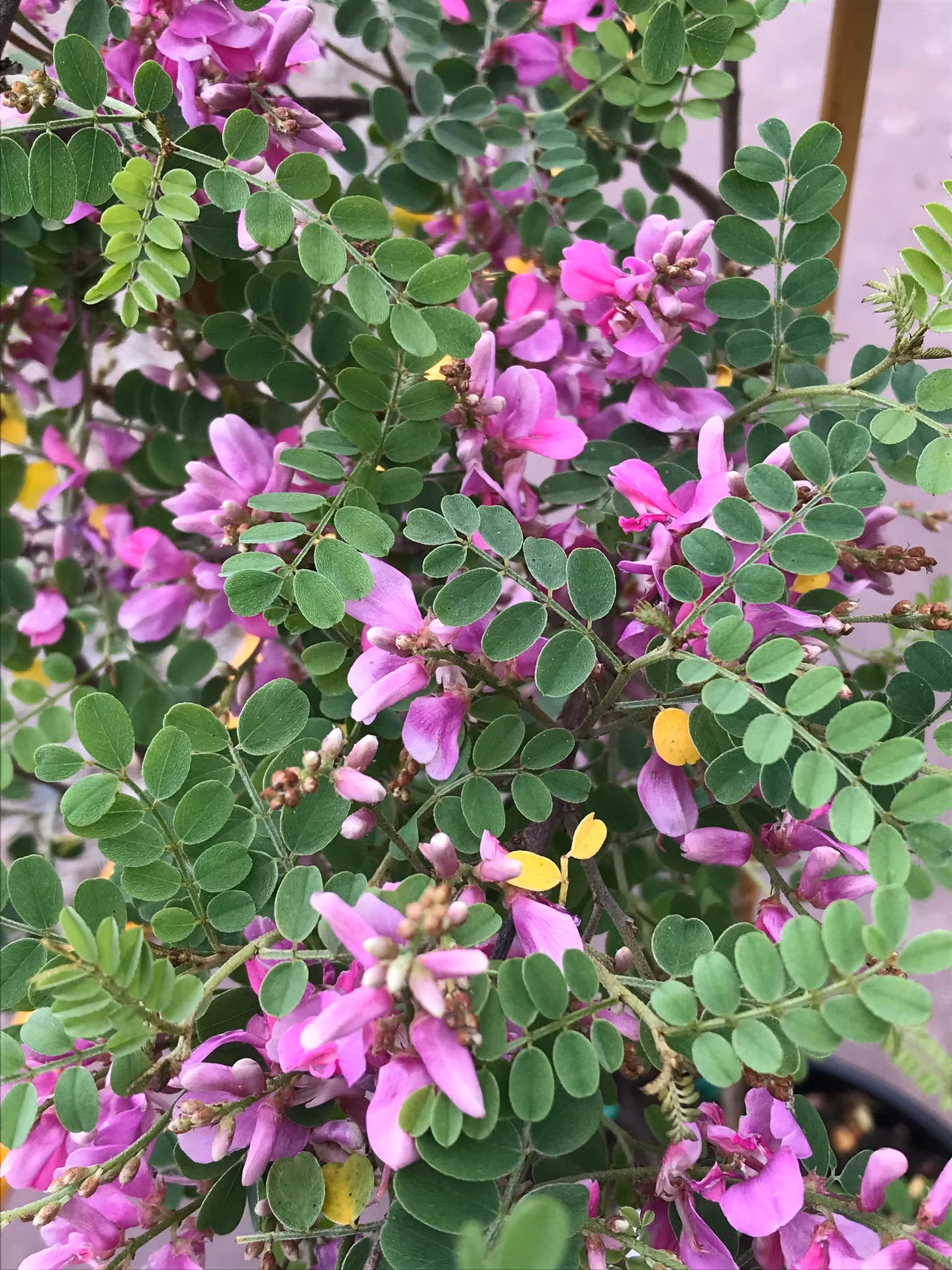 Indigofera 'Lake Mountains' är en hybrid av Indigofera potanininii och en okänd rikblommande sort. Den har ljusrosa/lila blommorr som står i vacker kontrast till det blågröna bladverket. Den är uppkallad efter området runt Lowgardens plantskola, Maalbergen, som består av kullar och myrar.