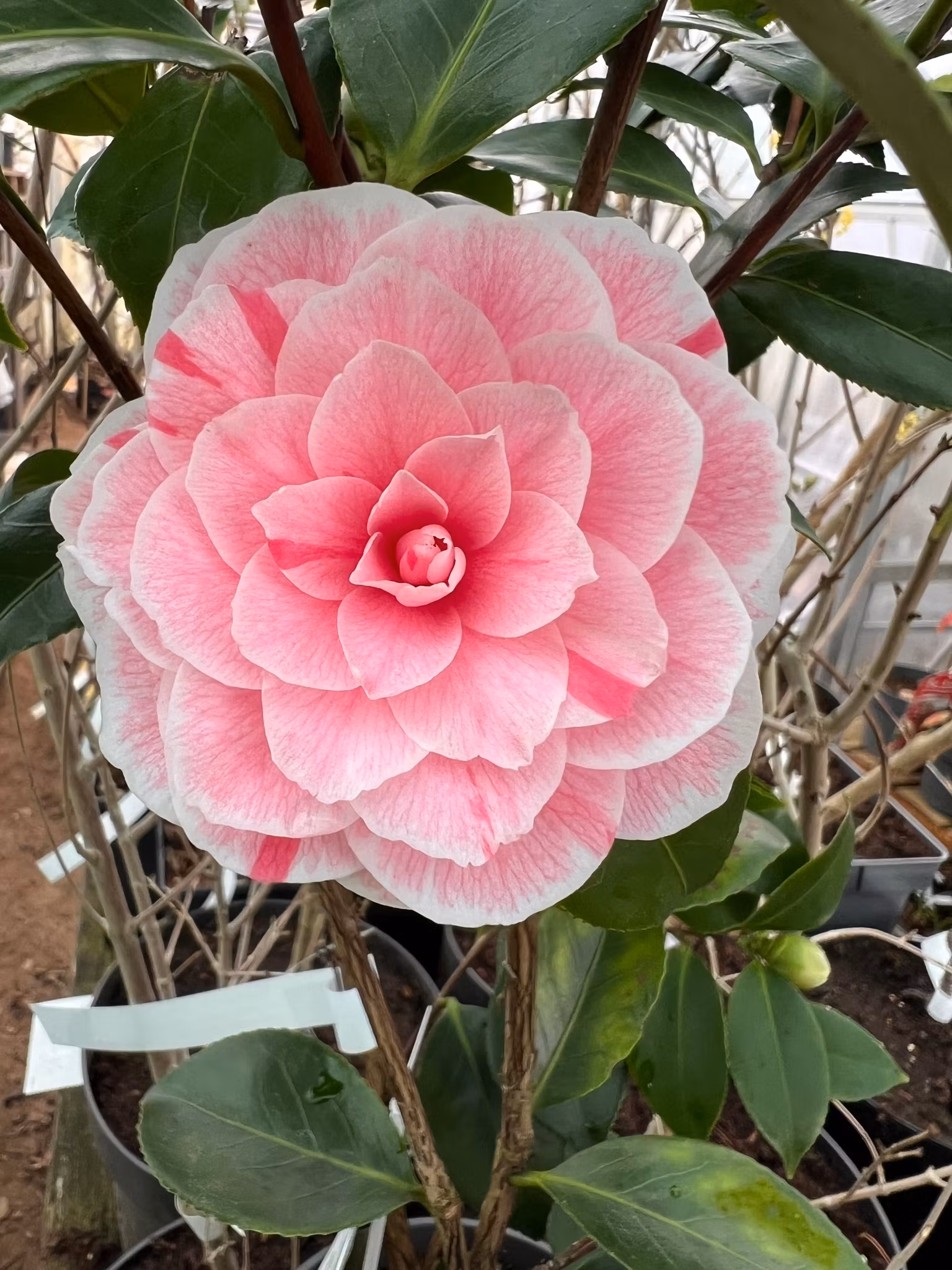 En otroligt vacker , vintergrön buske som är tätt täckt av glänsande grönt bladverk. Blommar med mycket vackra dubbla , rosa-strimmiga blommor som har en diameter 7-10cm. Blomningsperiod från januari till mars Även en och annan blommor dyker upp långt efter blomningsperioden . På grund av sin blomningstid rekommenderas att hålla den i första hand i uterum eller kallväxthus . Från våren kan den givetvis även placeras utomhus, främst på en halv skuggig plats. Går att odla i kruka men i landets mildaste delar kan planteras till friland . Sluthöjd 2-3m, slutspridning 1,5-2m efter 10 år. Trivs i väldränerad , fuktig ,surjord i vindskyddat , halv skuggigt , skuggigt läge.