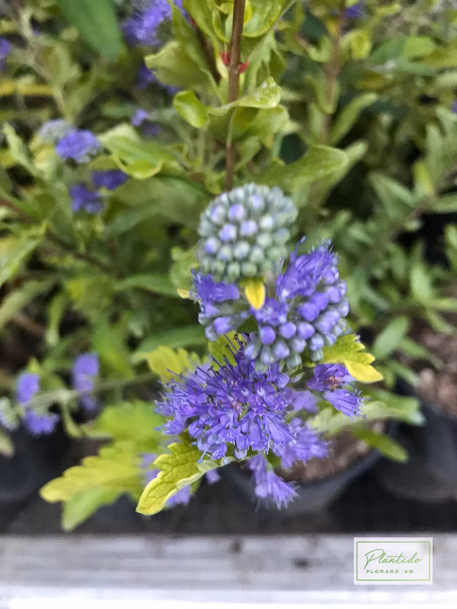 Hint of Gold är en kompakt växande buske . Sluthöjd 80-100cm . Bladen lime-grön som skapar en fantastisk kontrast med lila-blått blommorna. Sena blommorna är nektar rika och säsongen sista chans för bin och humlor.