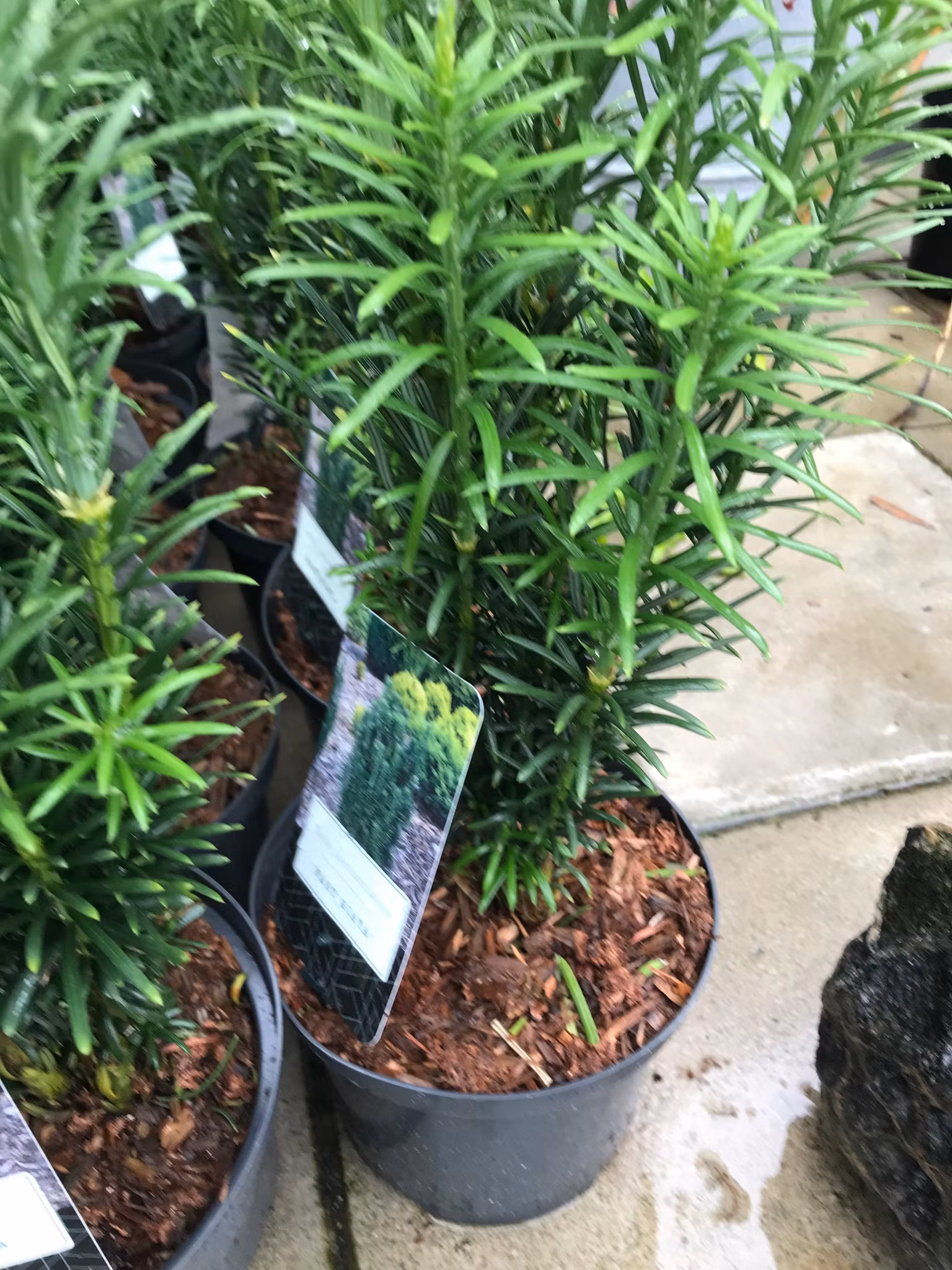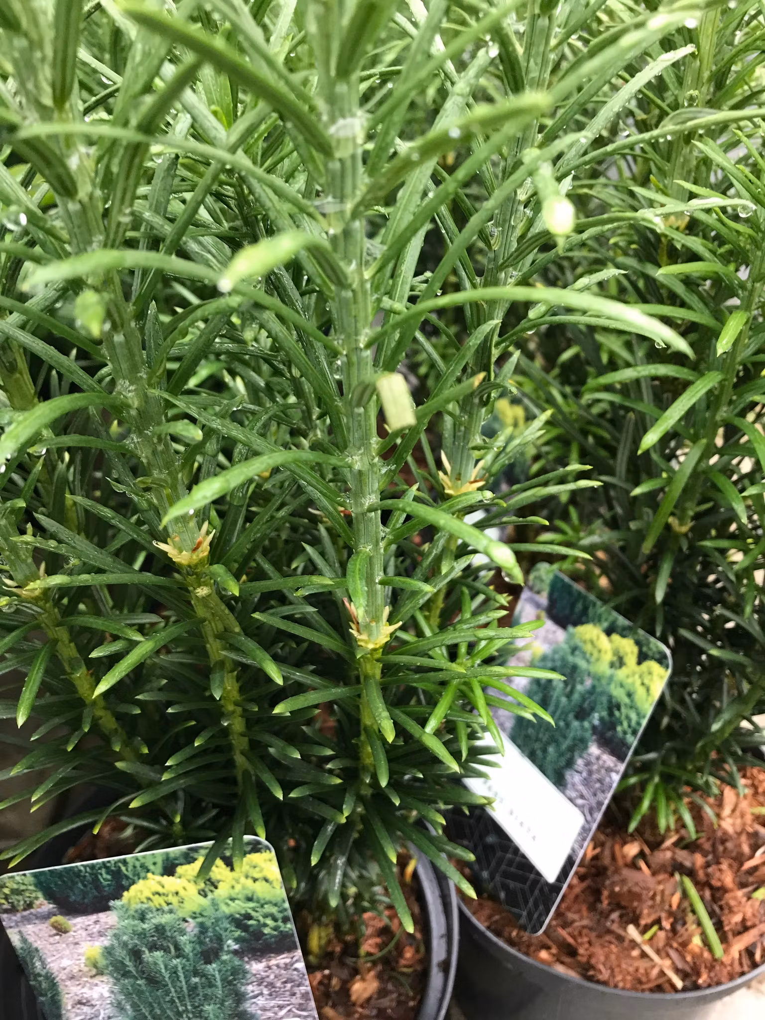 En långsamtväxande, pelarformad, vintergrön buske eller litet träd. Smala , spetsiga barren är mörkgröna . Sluthöjd : 1-2,5m. Trivs i väldränerad , näring och kalkrik jord i soligt , halv skuggigt läge. Går att odla i kruka.