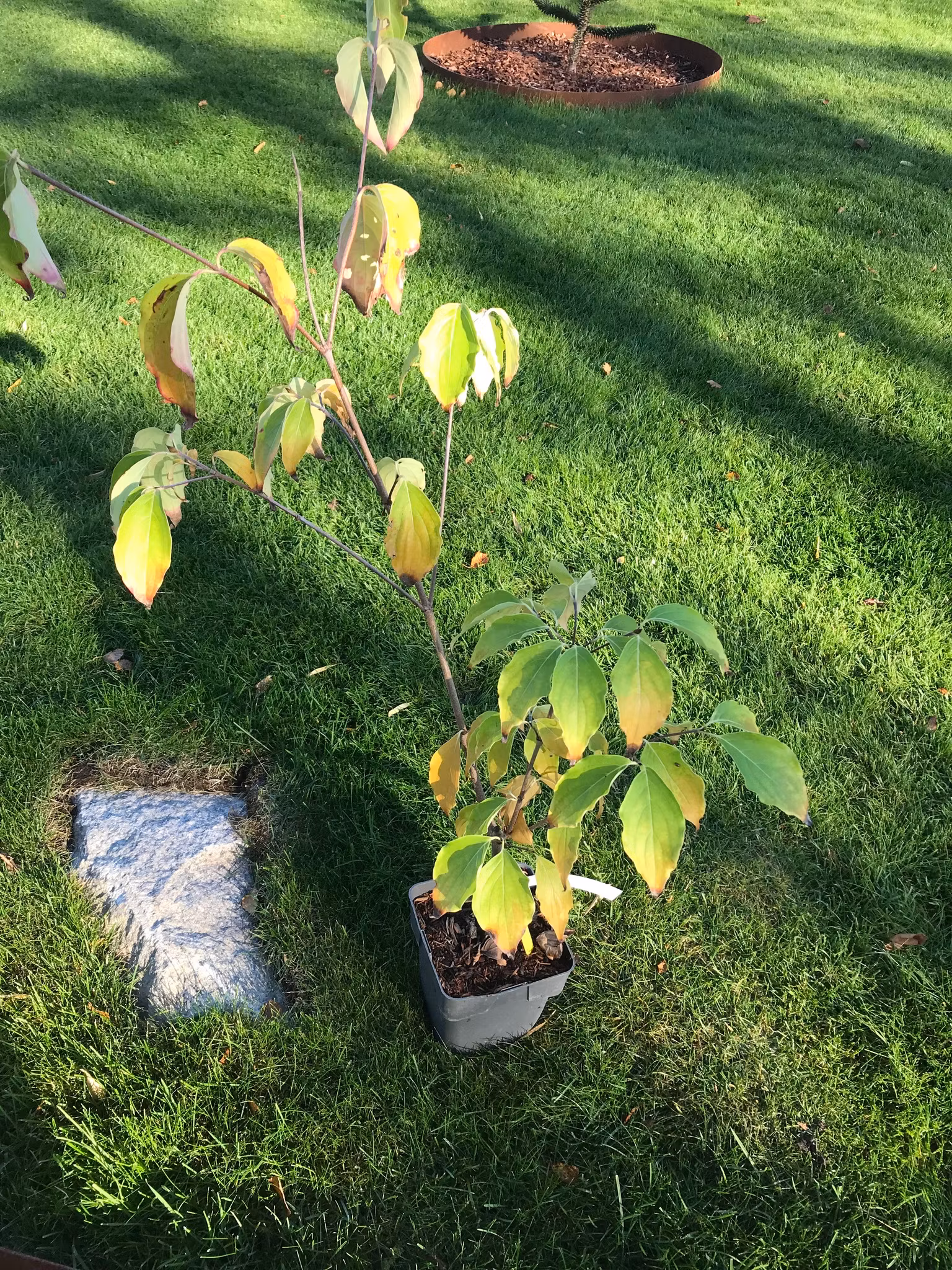 Rikblommande , bredväxande buske eller litet träd.. Mörkgröna, ovala blad skiftar färg till orange-röd på hösten. Små klasar av grönaktiga blommor omgivna av stora, pråliga, vita högblad på senvåren.. Följs av ljusröda ätliga frukter. Suthöjd: 3m