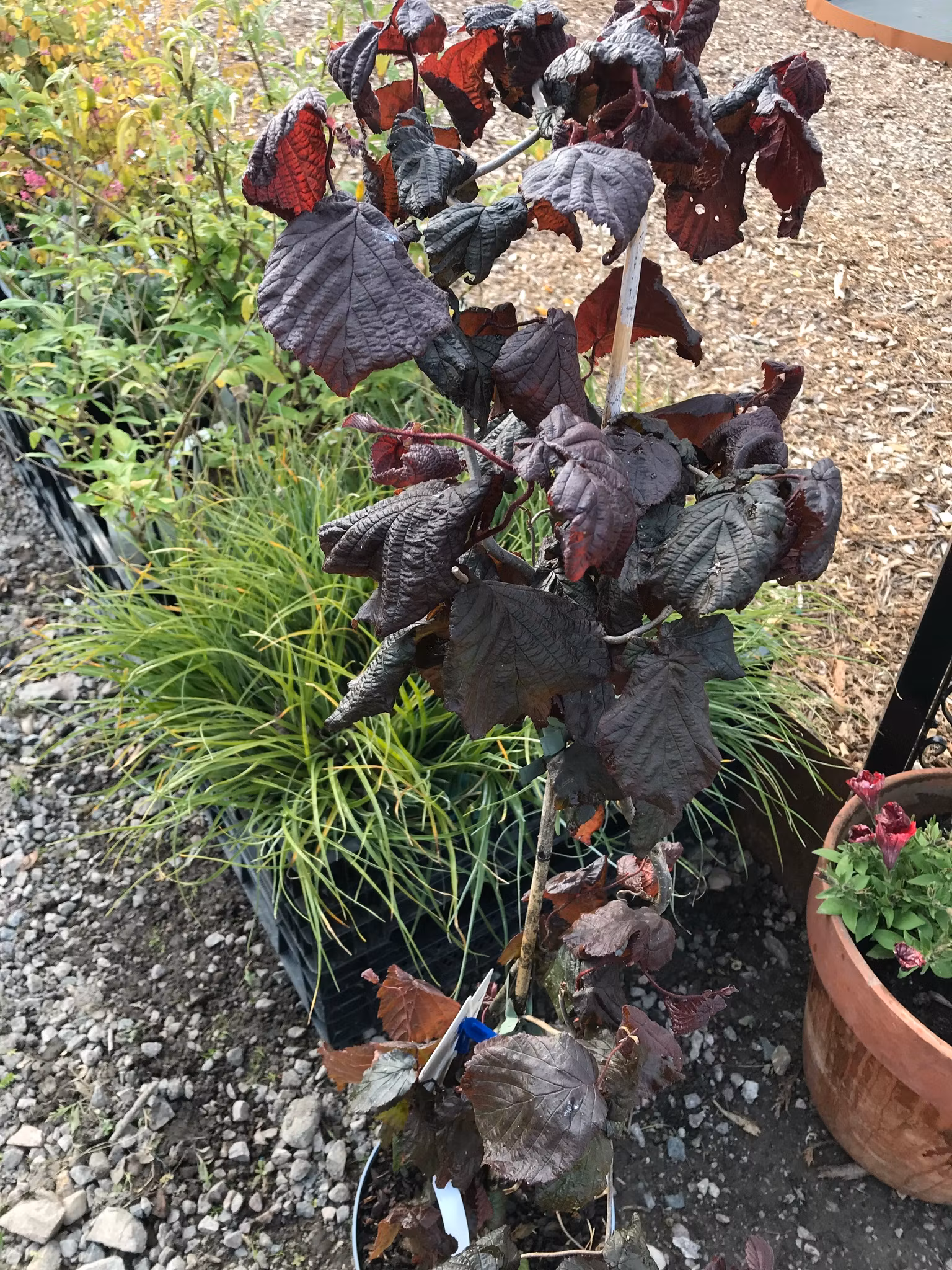 Mycket dekorativ buske med spiralvridna grenar och krusiga röda blad. Suthöjd 1,5-2m. Trivs i väldränerad , näringsrik jord i soligt eller halv skuggig läge.