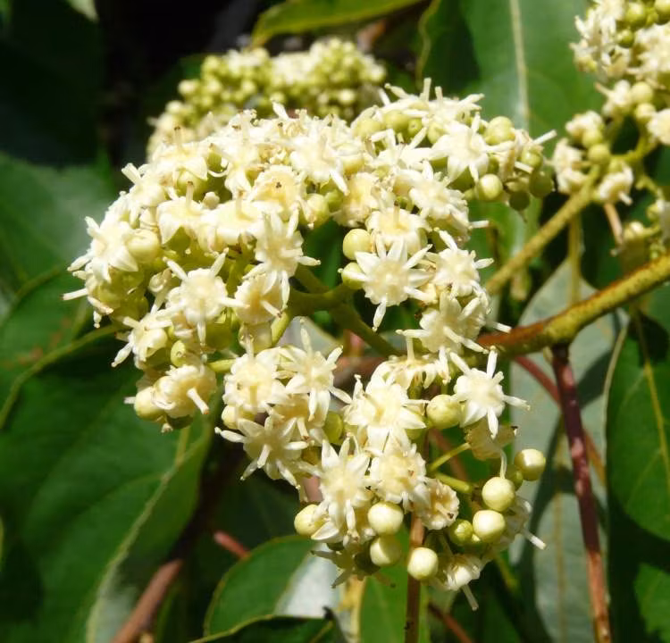 Japansk russinträd är ett lövfällande träd som är utbrett i Östasien, Det är ett stort träd i sin naturliga miljö men i vår breddgrad kan bli runt 5m högt. Blommar under försommaren med vackra vita blomställningar följs av russinliknande frukter som mognar i oktober. Detta egentligen ingen frukt det är de förtjockade, köttiga fruktstjälkarna som innehåller fröna, som är mycket söta och doftande och innehåller en hög andel socker, främst glukos och sackaros, men även fruktos i mindre mängder, samt en betydande mängd protein och vegetabiliskt fett. Den kan ätas rå eller torkad. Även unga blad innehåller sockerarter och kan använda som sötningsmedel. Russinträdet ingår i traditionella japanska , kinesiska och koreanska mediciner och flitig används i dag på grund av växtens olika hälsofördelar . Självfertil. Trivs i väldränerad sandiga lerjordar i soligt, varmt läge. Yngre plantor måste skyddas mot kyla i början men när plantan blir äldre då utvecklas full härdighet.