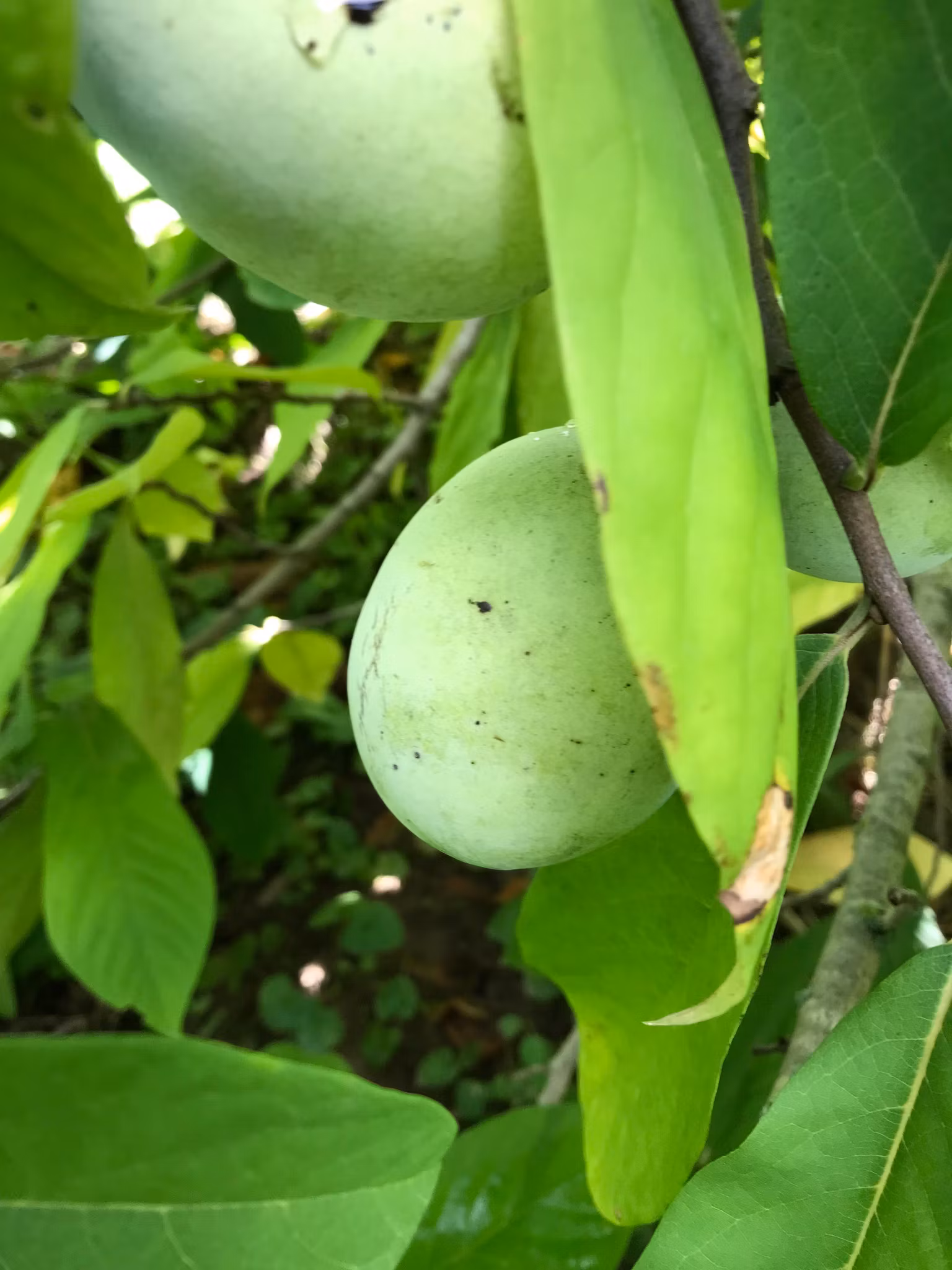 Paw paw eller Michigan banan är ett litet träd eller större buske som kan bli 2,5-5 m hög . Kronan är gles med stora avlånga , hängande blad. Blommar med purpur färgade otroligt vackra blommor vid lövsprickning. Frukten är stora avlånga med kärnor. Fruktköttet har en underbar exotisk smak. Smaken påminner om mango men mjukare och finare än mango med inslag av vanilj. Fruktköttet är krämig och mjukt. Mogen paw paw faller från trädet.Trivs i väldränerad, fuktighets bevarande , näringsrik, halvsur eller pH neutral jord i soligt .vindskyddad läge. Paw paw utvecklar en stark rotsystem därav kräver regelbunden bevattning Unga plantor måste skydda mot stark sol i 2 år. . Fullvuxen träd är tålig mot frost ,kyla och stark sol. Paw paw har annorlunda känsligare rotsystem så omplanteras med försiktighet. Välj rätt plats från början eftersom växten klarar inte att bli flyttad senare. Paw paw är tvåkönad som innebär att blomman innehåller den reproduktiva delen av hanen och honan men arten är inte självfertil . Därav rekommenderas att plantera 2 genetisk skilda exemplar . Även sorter som anges självfertil har bättre fruktsättning vid kors pollinering. Naturlig pollinering görs av spy flugor och visa skallbagge arter . Vid manuell pollinering använd en liten, mjuk borste för att ta pollen på pistil .