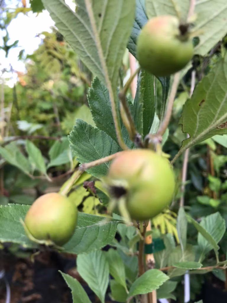 En halv vintergrön buske eller litet träd, med ett utbrett växtsätt, ofta taggiga stjälkar. Bladen är glansiga ,mörkgröna som är tandade nära topparna . Blommar sent på våren med vita blommor i klasar. Följs av gyllengula , ätliga frukter som håller sig kvar in på vintern. Trivs i alla jordar i soligt eller halv skuggigt läge. Fram till etalering kräver regelbunden bevattning därefter tål torka .Sluthöjd 4-8m efter 10 år.