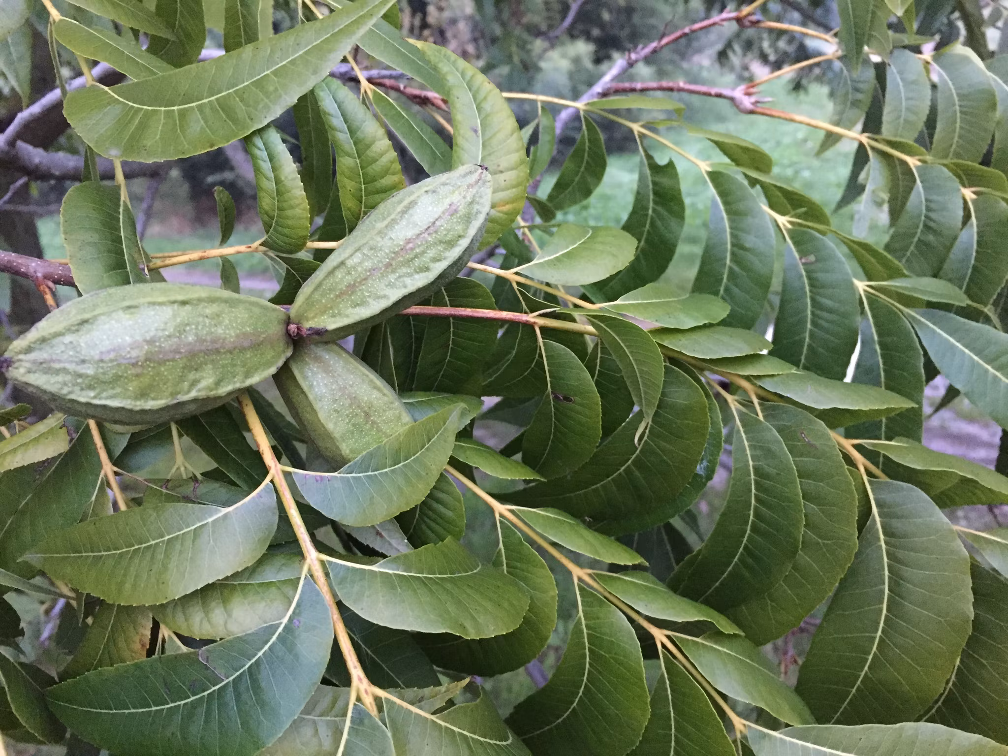 Pekanträd härstammar från Amerika. Detta är ett stort mycket imponerande, lövfällande träd med bredd krona. Nära besläktad till valnöt. Pekanträd har stort prydnadsvärde samt producerar värdefulla valnöts liknande mycket välsmakande nötter. Nötterna mognar i oktober, november. För fruktsättning behöver ett annat pekanträd som pollinerar. Trivs i väldränerad näringsrik jord i soligt, varmt läge.