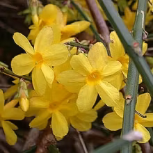 Vinterjasmin är en 2-3m hög klättrande buske med hängande grenar. Från januari till april lyser upp i trädgården med sina gula blommor på årsskotten.