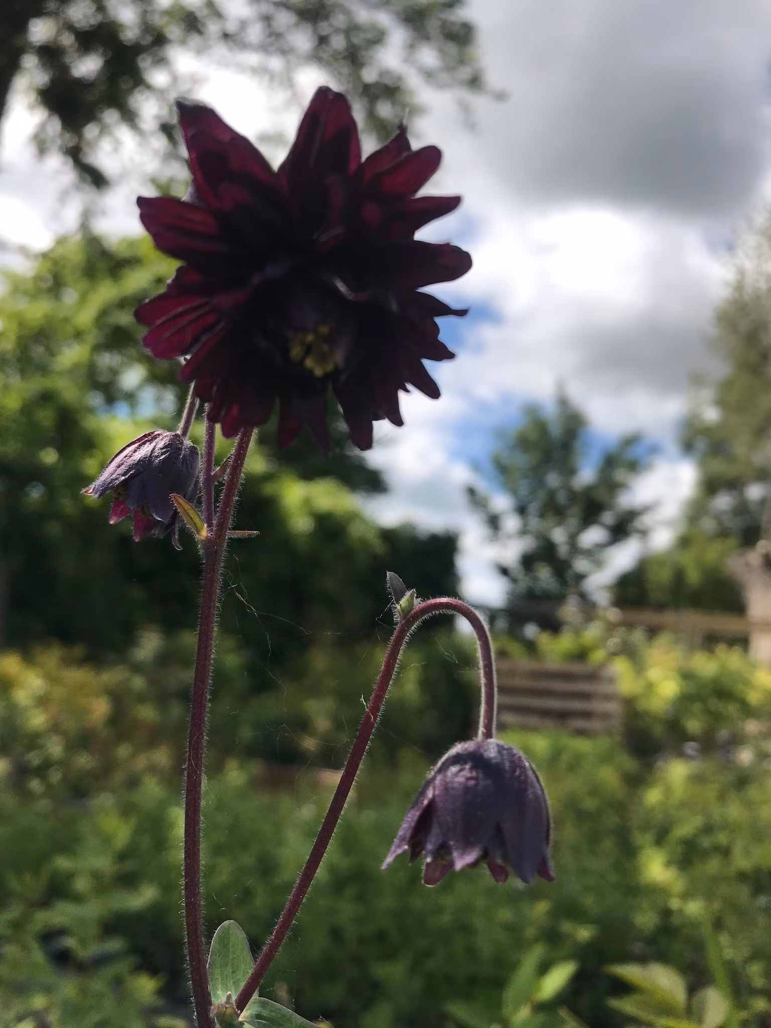 Tålig , anspråkslöst perenn som blommar med fyllda purpursvarta blommor utan sporrar. Blomningsperiod juni-juli... Höjd70cm. Trivs i väldränerad , näringsrik , fuktig jord i soligt , halv skuggigt läge.