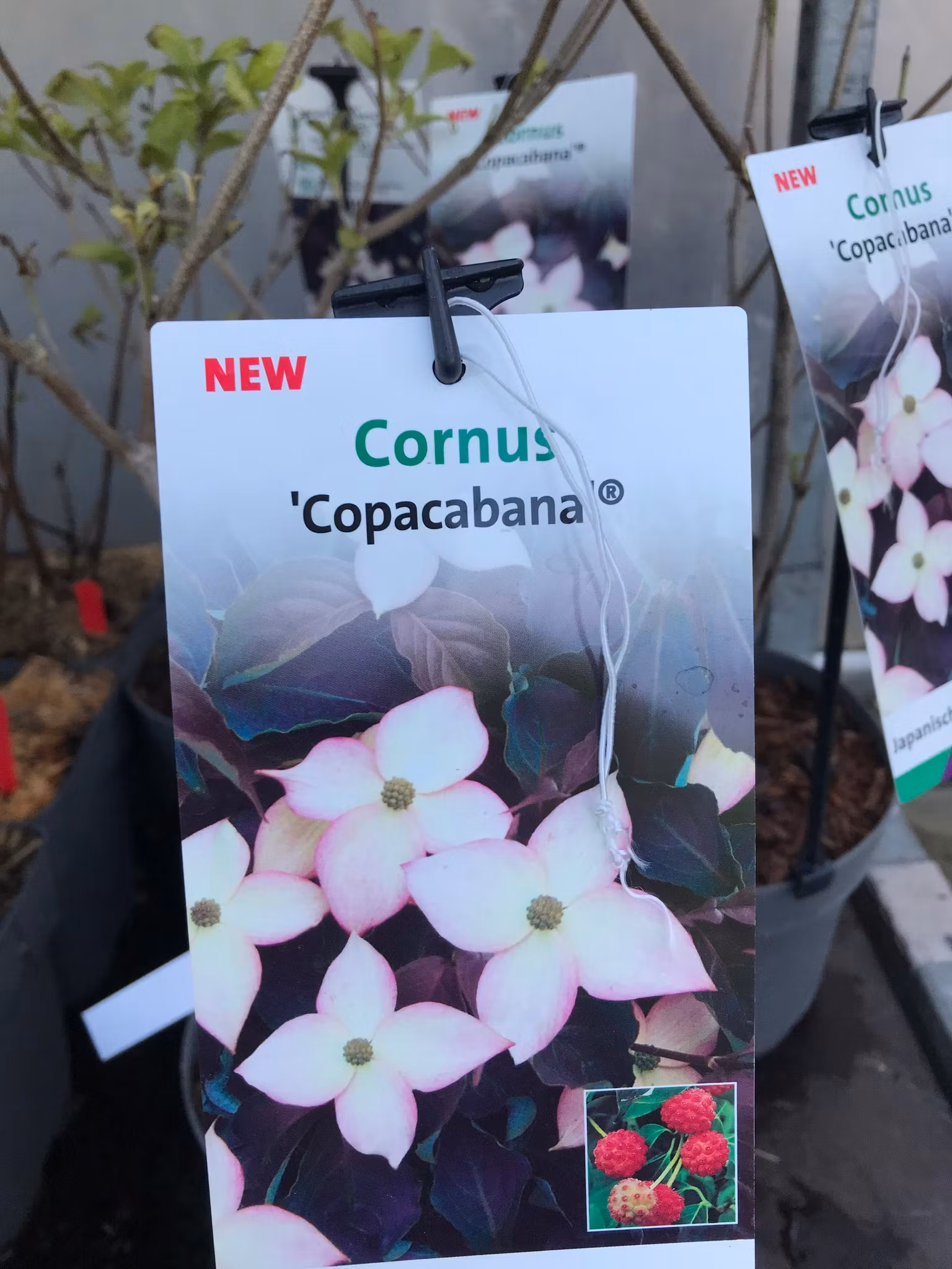 Kompakt , mycket dekorativ , uppskattad sort av blomsterkornell. Växten har brett konisk form. Sluthöjd 2,5-4m efter 10 år. Blommar på juni med småblommor omgiva av stora krämvita högblad som gradvis få en mjukt rosa kant. Följs av jordgubbsliknande rosaröda ätliga frukter som mognar under hösten. Trivs i väldränerad, fuktighetshållande pH neutral eller sur jod i soligt eller halv skuggigt läge.