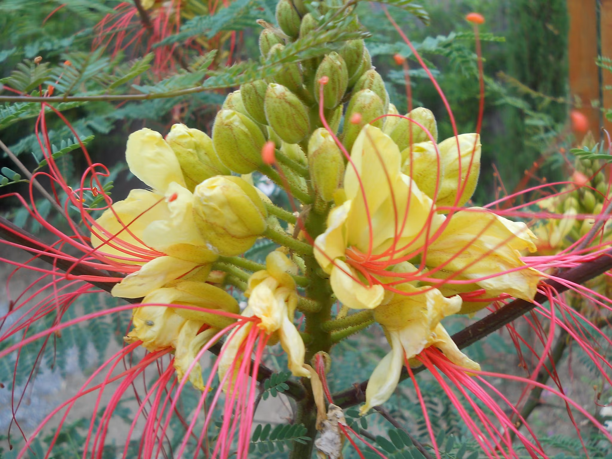 Paradisfågelträd , är ett halv lövfällande till lövfällande litet träd eller buske . Den är inhemsk i subtropiska områden i Argentina och Uruguay, men odlas nu i stor utsträckning i tropiska och varma tempererade regioner runt om i världen för sina attraktiva gula blommor med klarröda ståndare som blommar på sommaren i upprättstående öppna klasar. Trivs i väldränerad jord utan större krav i soligt , varmt skyddat läge. Sluthöjd 2-3m. Går att odla i kruka