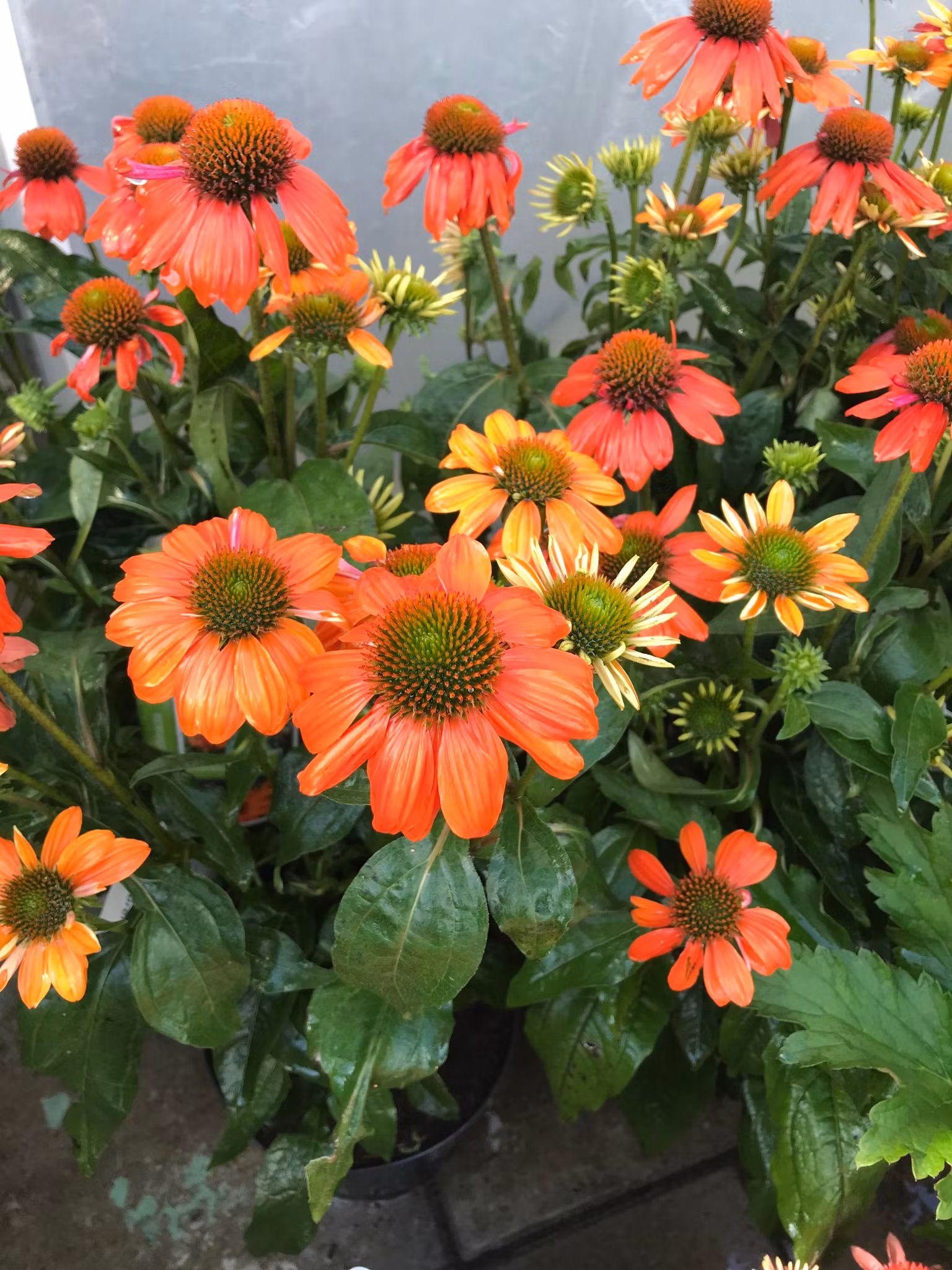 Sombrero ® Adobe Orange har stora, orangefärgade blommor Mörkgröna bladverk är helt täckta av blommor. En av de bästa orangefärgade sort hittills. Blommorna attraherar bin och fjärilar under blomningsperioden. Kvarvarande vissna blommor på plantan ger vintermat åt finkar och andra fåglar. Trivs i väldränerad , mullrik, genomsläpplig jord i soligt eller halv skuggigt läge.