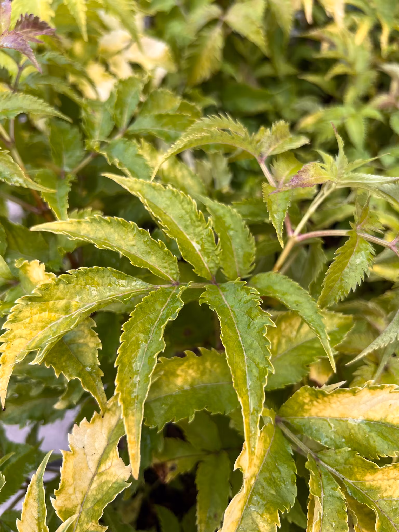 Vacker dvärgfläder som blir max 2-2,5 m. Unga skotten är rosaröd som övergår till gulgrönt. Blommar med vita väldoftande blommor , följs av svarta bär kluster . Bladen skiftar till rosaröd färg under hösten. Lättodlad växt som trivs i väldränerad , näringsrik jord i soligt eller halv skuggigt läge. Båda bär och blommor är ätliga.